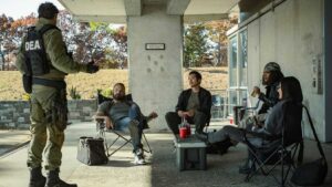 The majority of The Rip’s 113-minutes playing time is reminiscent of the classic Assault on Precinct 13 (both versions), which includes the tactical unit under fire in the house from unknown outside forces. That “under fire” references gunfire as well as the house being set on fire.